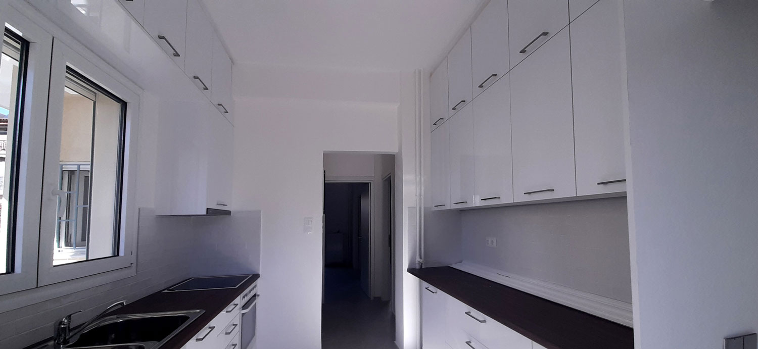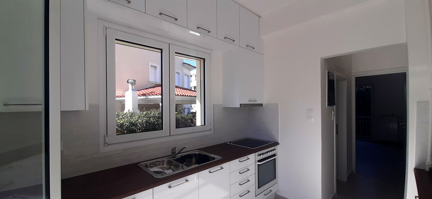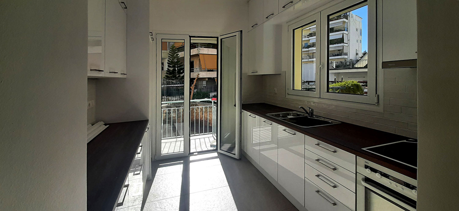 Ζητήθηκε από το γραφείο μας η πλήρης ανακαίνιση διαμερίσματος σε διαμέρισμα στην ιδιαίτερα αναπτυσσομένη περιοχή του Ελληνικού. Το ύφος των υλικών που επιλέχθησαν ήταν επιτηδευμένα μινιμαλιστικό με έμφαση στις καθαρές επιφάνειες και την λειτουργικότητα. Σε συνδυασμό με το άπλετο φως που μας προσφέρει η χωροταξική διάταξη το αποτέλεσμα ήταν πολύ όμορφο.